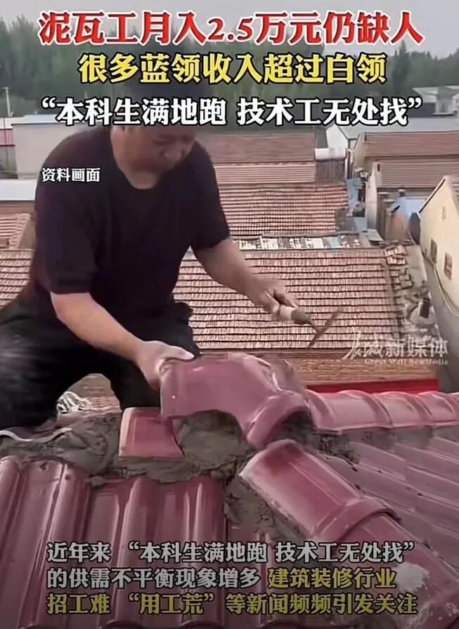 近日有媒体报道,一位瓦匠招学徒,5000元包吃住,学完之后月收入可以到2.5万元。很快,这个瓦匠招工的事情就在网上引起了广泛讨论。