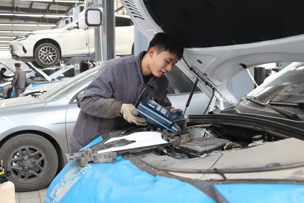 进入企业后,闪振明没有满足于 “修好车” 的基本要求,而是琢磨着 “如何修得更快、更好”。如今在工位上,他仅凭听诊器就能判断电机异响的根源,用万用表精准定位电路故障,这些都离不开在校期间打下的坚实基础。