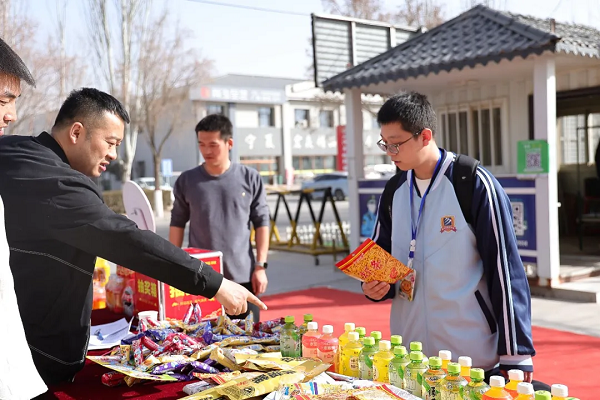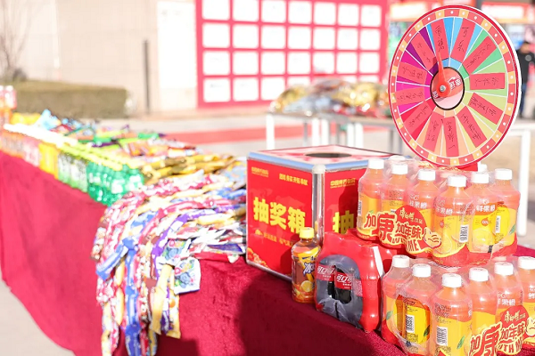 老师们一大早就已经为同学们精心准备了幸运大转盘+抽奖箱双重抽奖活动,用一份份惊喜,温暖每一位学子的返校之路。展台之上,各种饮品、各色零食大礼包整齐码放,五彩缤纷的零食串成了喜庆的“美食墙”。颜值与美味的双在线,吸引了每一位入校学子的目光。